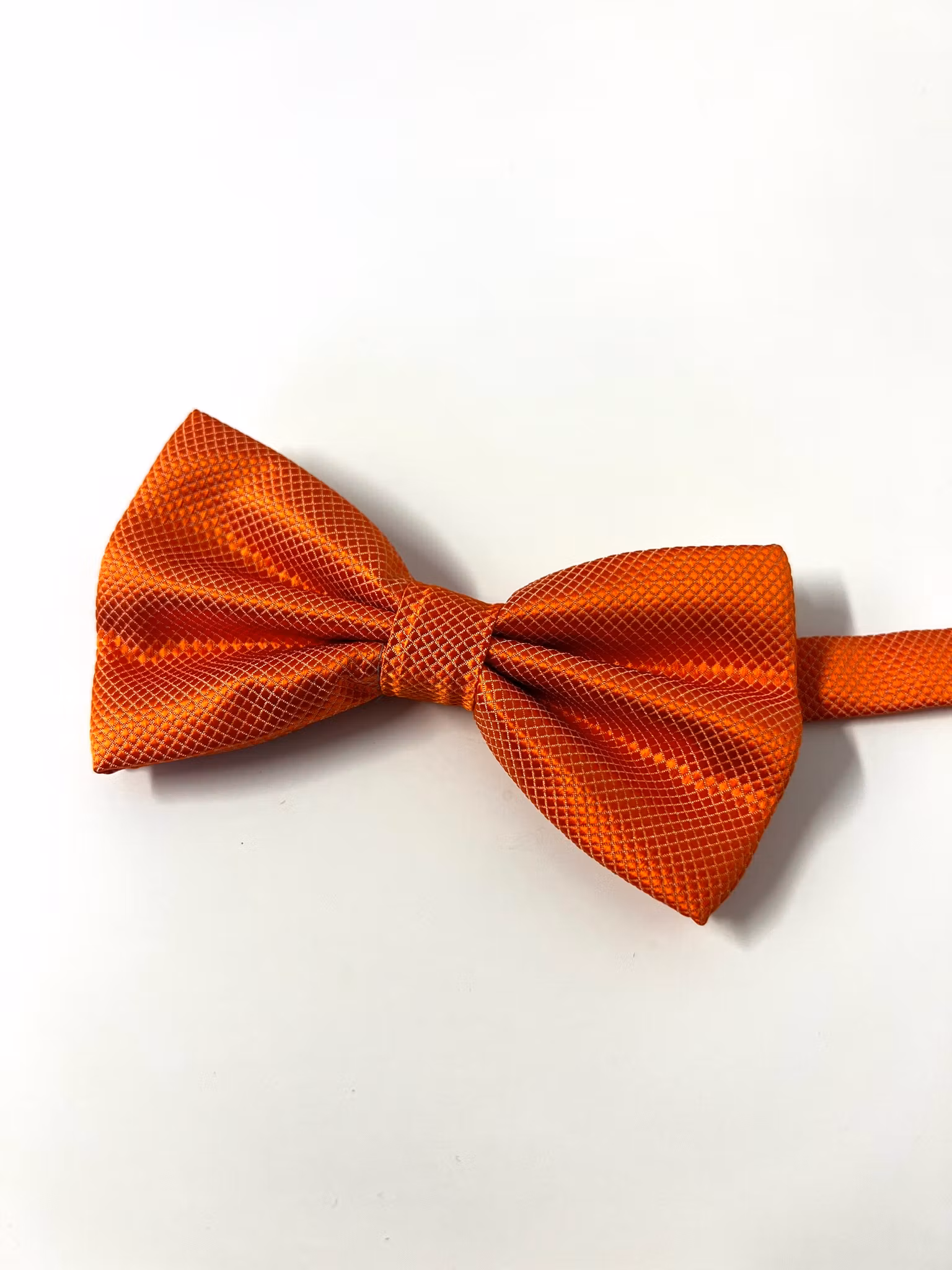 Denna fluga är handgjord i ett orange och glansigt material. Reglerbar i bandet kring nacken och passar små till medelstora hundar.